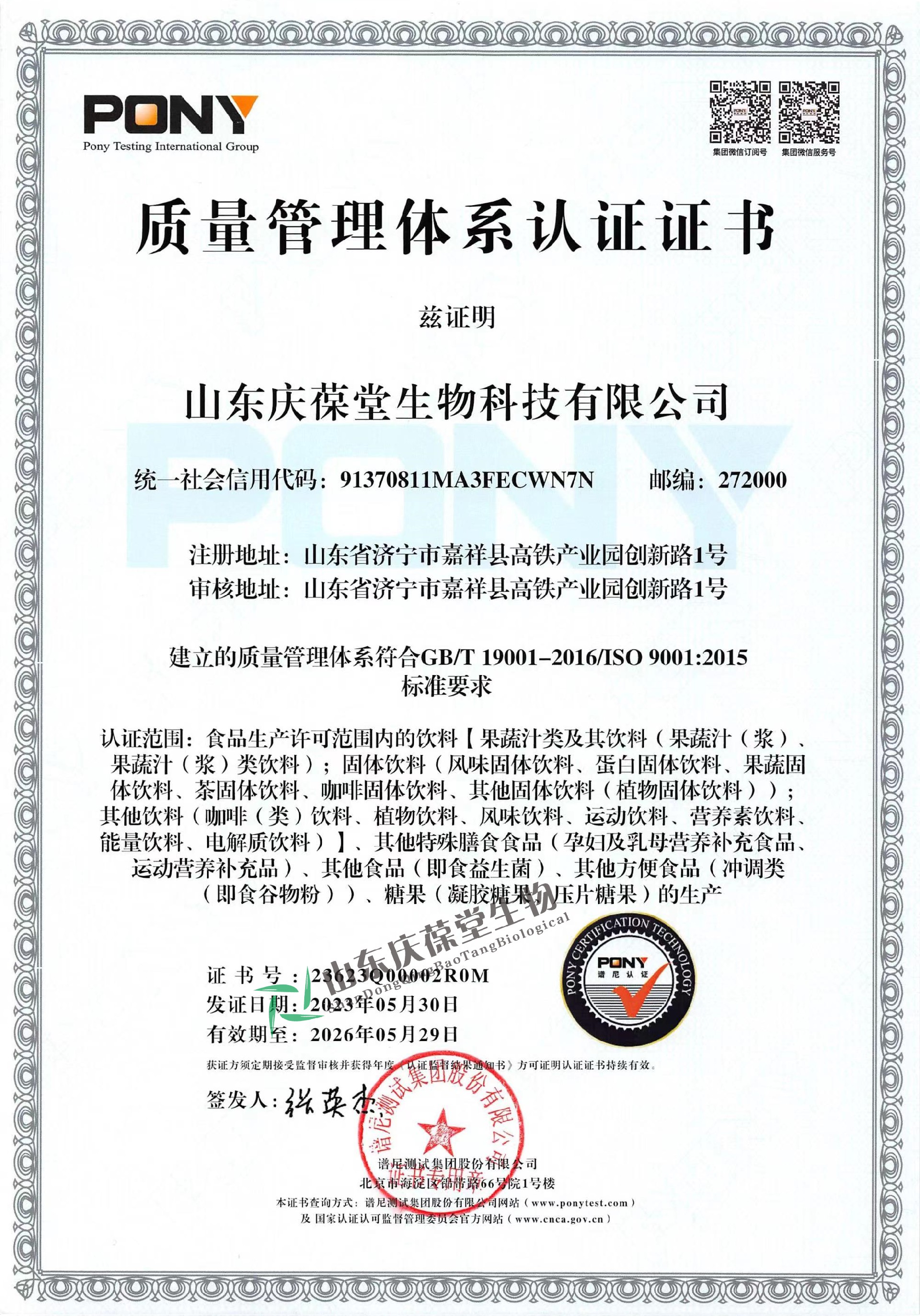 | 質(zhì)量管理體系認(rèn)證證書 |