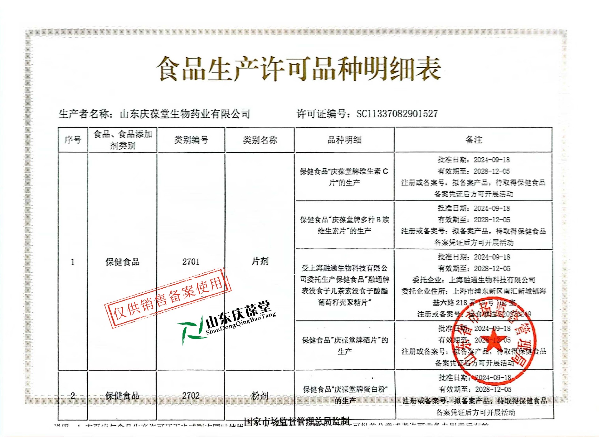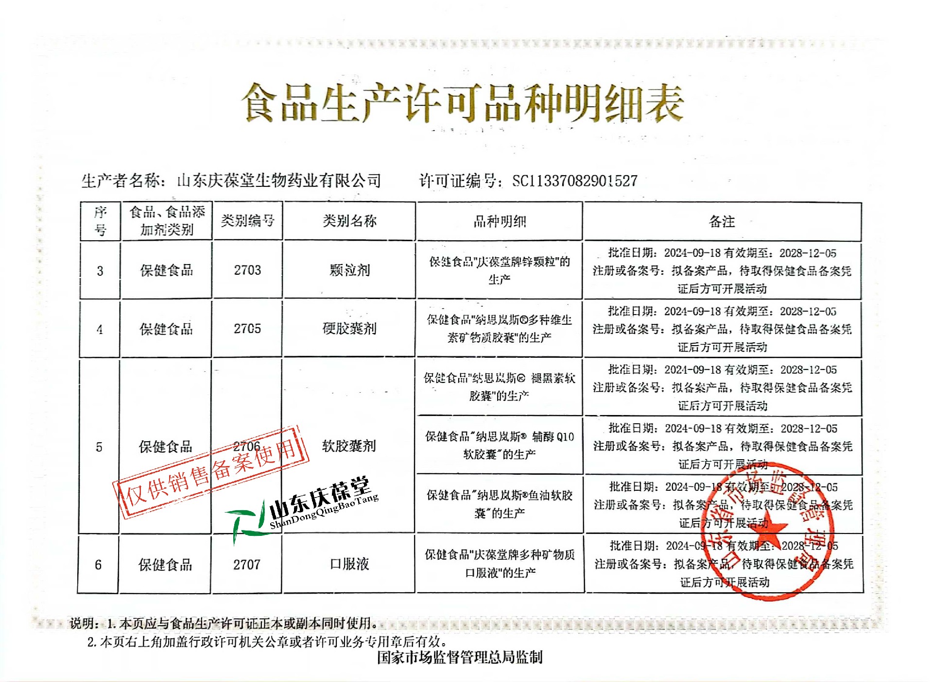 | 保健食品明細(xì) |