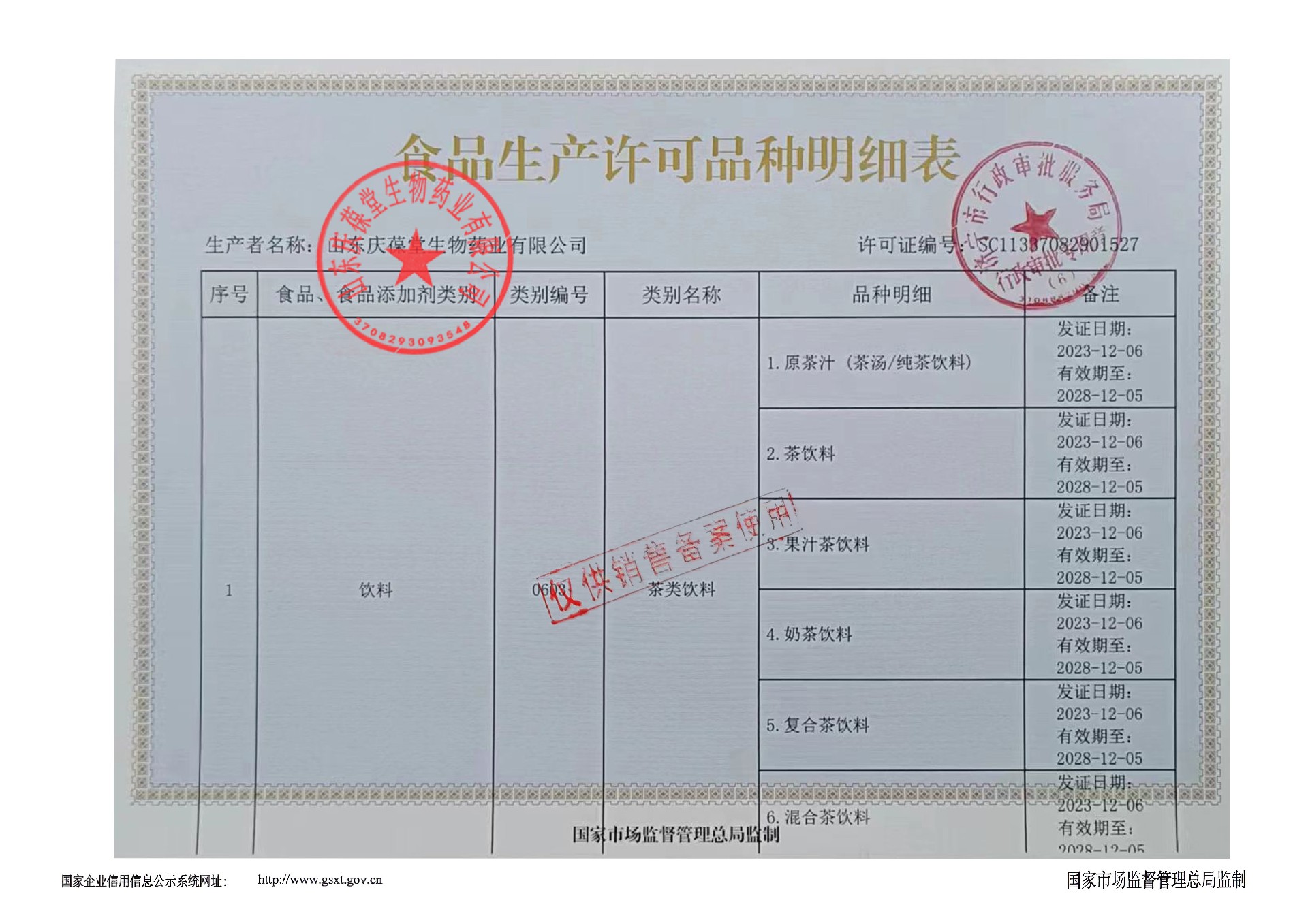 | 消毒產(chǎn)品生產(chǎn)許可證 |