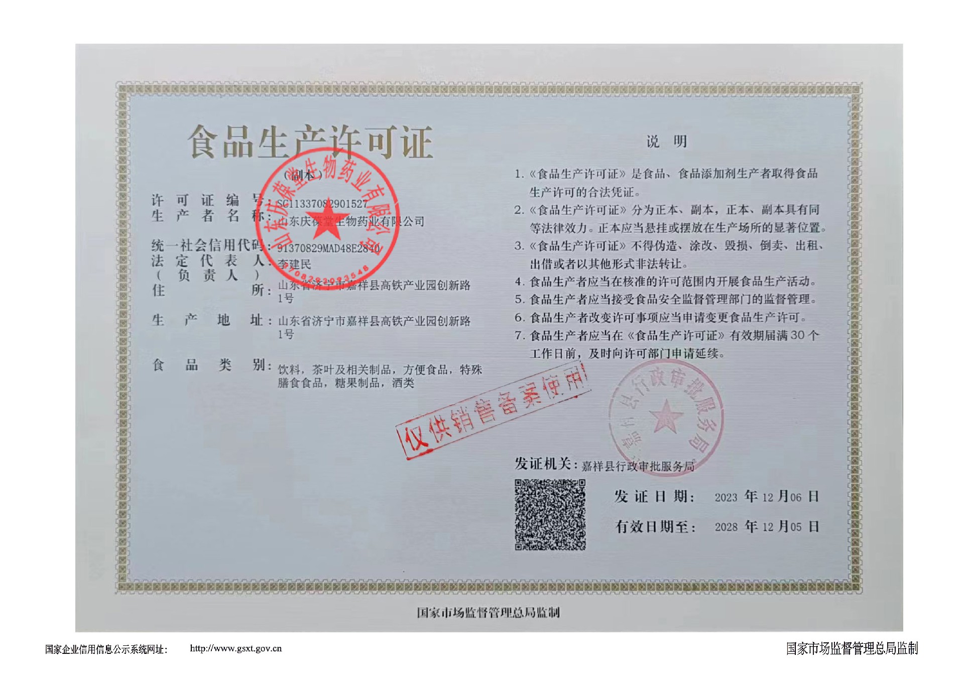 | 食品生產(chǎn)許可證 |